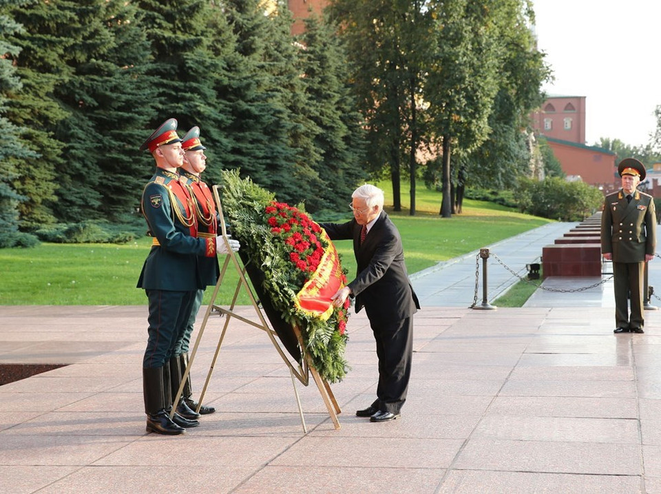 El secretario general del Partido Comunista de Vietnam, Nguyen Phu Trong, y el primer ministro de Rusia, Dmitry Medvedev (Fuente: VNA) El secretario general del Partido Comunista de Vietnam, Nguyen Phu Trong, y el primer ministro de Rusia, Dmitry Medvedev (Fuente: VNA) El secretario general del Partido Comunista de Vietnam, Nguyen Phu Trong, rinde homenaje ante la Tumba de Soldado Desconocido (Fuente: VNA) Actividades del secretario general del Partido Comunista de Vietnam, Nguyen Phu Trong, en Rusia