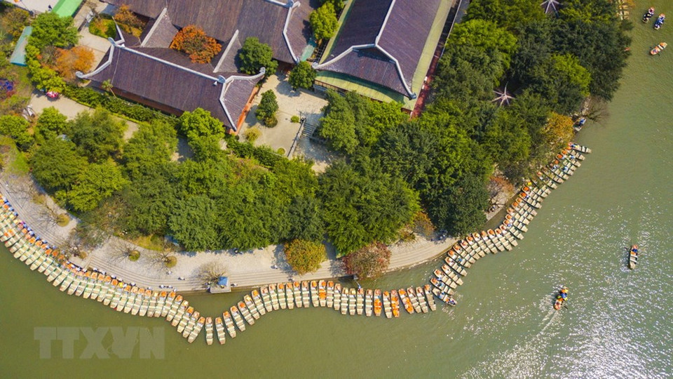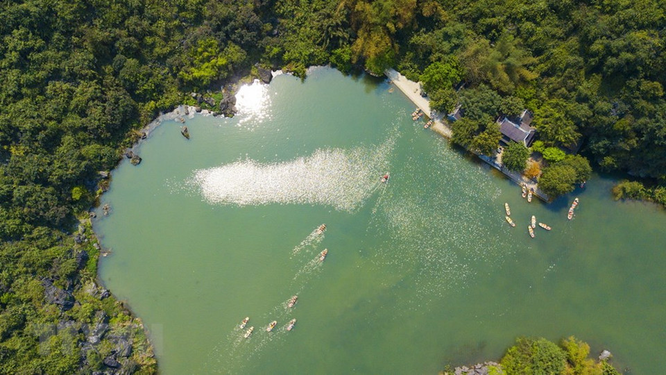 Belleza del complejo turístico de Trang An vista desde alto