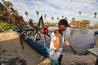 (Los camarones son transportados en los camiones frigoríficos a otras localidades).