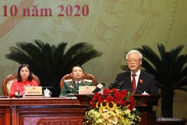El secretario general del Partido Comunista de Vietnam (PCV), Nguyen Phu Trong, habla en el evento (Fuente: VNA) En su discurso, el máximo dirigente partidista dijo que el Comité Central revisarálos contenidos relacionados con las políticas y lineamientos de la prevención ycontrol de la pandemia del COVID-19, el desarrollo socioeconómico, las finanzasy el presupuesto estatal, y el tiempo de implementación de la reforma salarial.