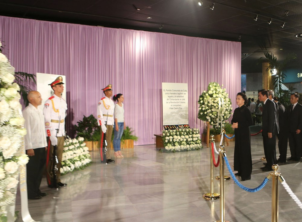 Una delegación del Partido Comunista y del Estado vietnamitas, encabezada por la presidenta de la Asamblea Nacional, Nguyen Thi Kim Ngan, rindió tributo a Fidel Castro en Cuba.