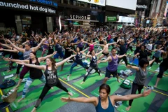 Cerca de 12.000 personas celebraron el Día Internacional del Yoga en Times Square, que desde hace 15 años acoge una multitudinaria clase coincidiendo con el Solsticio de Verano.