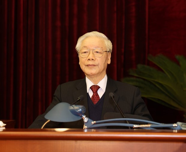 El secretario general del Partido Comunista de Vietnam y presidente del país, Nguyen Phu Trong, en el evento (Foto:VNA) Destacó que a pesarde los desarrollos complejos e imprevisibles en el mundo y la región, el Comité Central, elBuró Político y el Secretariado, con su solidaridad, gran determinación yesfuerzo, han completado todo el programa de trabajo establecido para el XIImandato para dirigir el país a lograr resultados muy importantes.