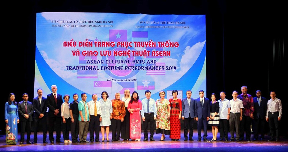 Trajes tradicionales de los países miembros de la Asociación de Naciones del Sudeste Asiático (ASEAN) se efectuó en Hanoi.