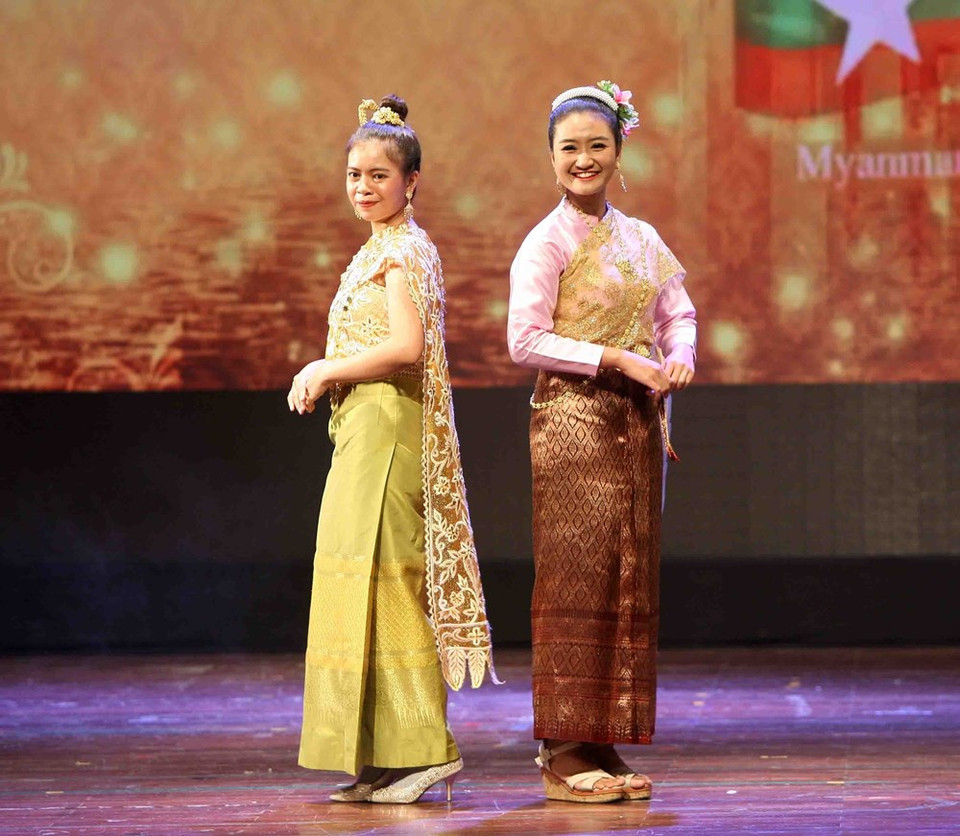 Desfile de Ao dai (traje tradicional de la mujer vietnamita)                 Actuación de artistas vietnamitas (Fuente: VNA)    Performance de artistas laosianos (Fuente; VNA)    Actuación de artista tailandesa (Fuente: VNA)               [Foto] Desfile de trajes tradicionales de países de ASEAN