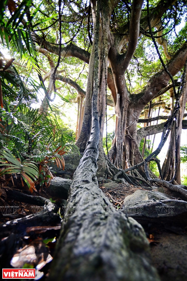El antiguo baniano en el bosque primario en la península de Son Tra tiene más de 800 de años de edad y de 22 metros de altura, y la circunferencia del tronco principal y el grupo de troncos secundarios es de casi 100metros (Fuente: VNA)