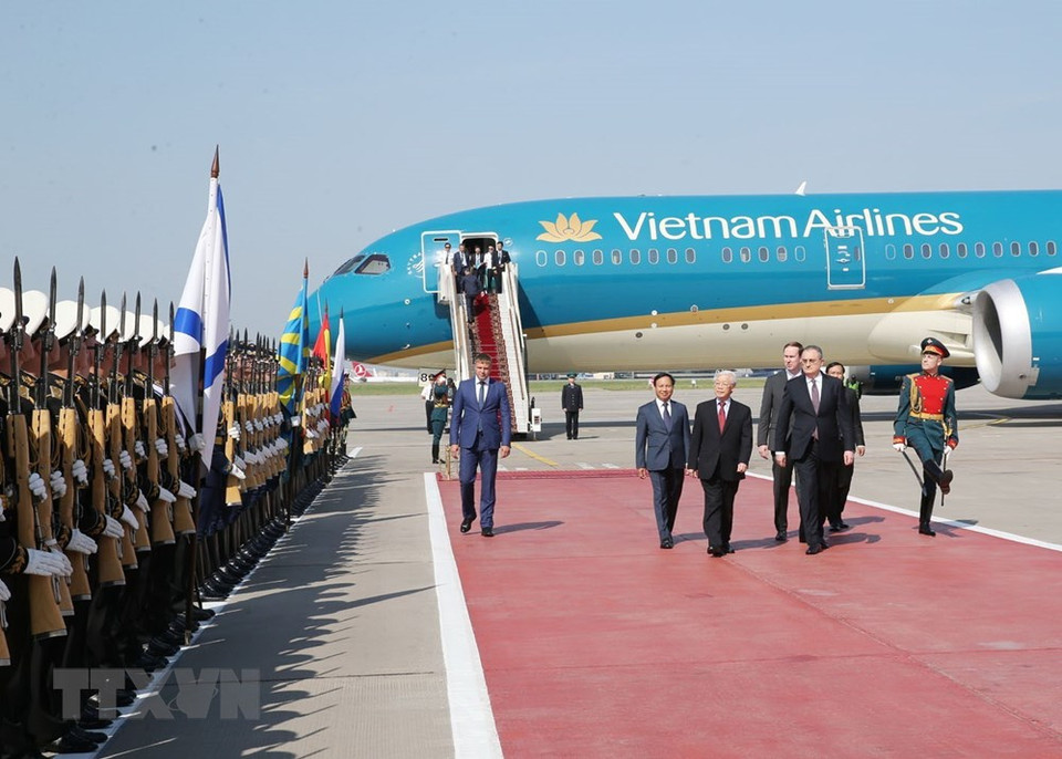 El secretario general del Partido Comunista de Vietnam, Nguyen Phu Trong, pasa revista a la guardia de honor (Fuente: VNA) Dirigentes de la Cancillería rusa reciben a Nguyen Phu Trong (Fuente: VNA) [Foto] Secretario general del Partido Comunista de Vietnam visita Rusia