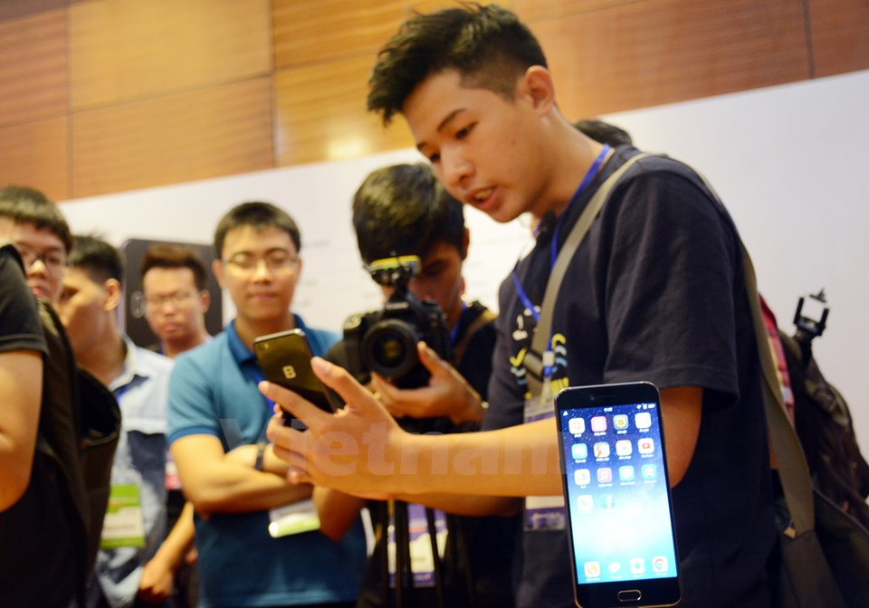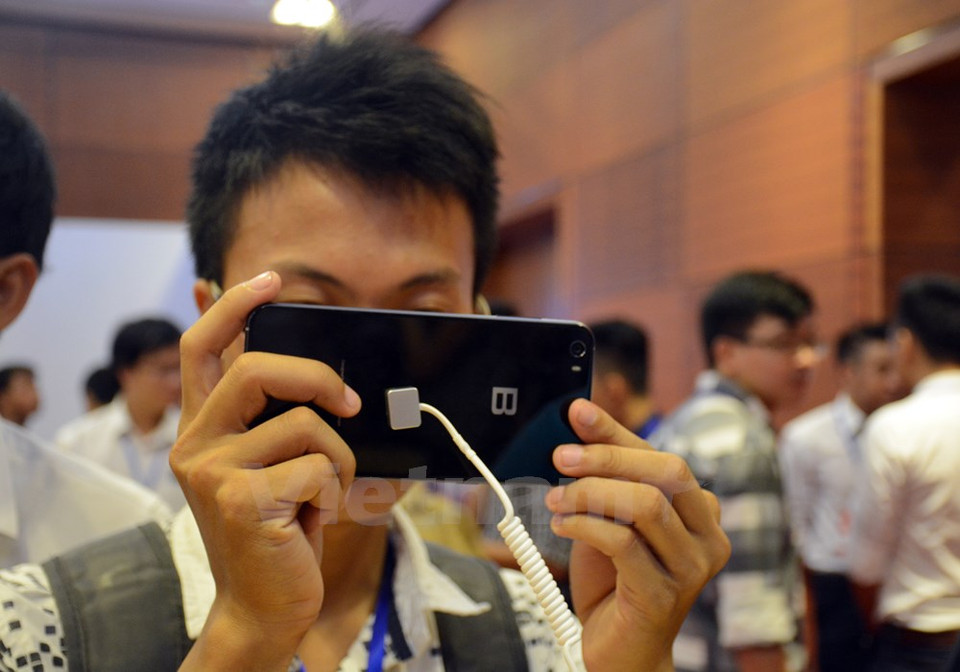 El presidente del grupo de tecnología vietnamita Bkav, Nguyen Tu Quang, presenta el nuevo BPhone. Numerosas personas asistieron al estreno del BPhone 2017. [Fotos] Estrenan smartphone hecho en Vietnam - BPhone 2017