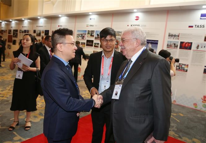 La conferencia se centra en tres contenidos muy actuales de la prensa, que son la estrategia de las agencias de noticias para responder a los cambios en los hábitos de uso de la información, con énfasis en los videos y YouTube; la información falsa y verificación de información de prensa; y la recuperación de la confianza en la prensa convencional. (Fuente: VNA)