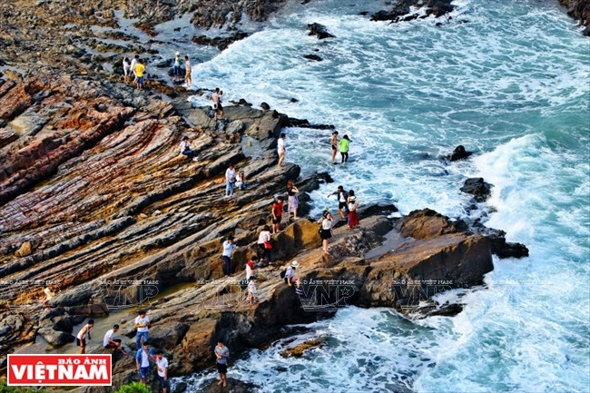 Los visitantes se interesan en descubrir la belleza del sedimento en los arrecifes de Mong Rong (Fuente: VNA)