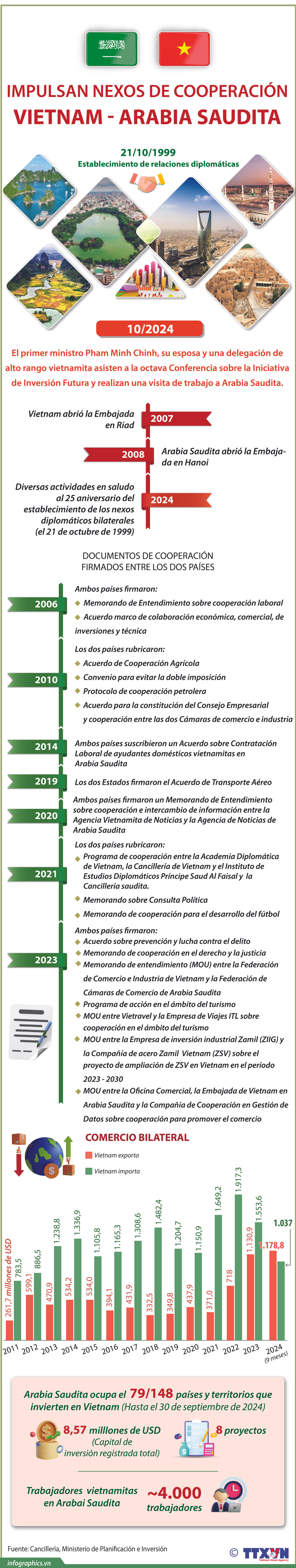 La visita de trabajo del primer ministro de Vietnam, Pham Minh Chinh, a Arabia Saudita del 29 al 30 de octubre, y su participación en la octava conferencia sobre la Iniciativa de Inversión Futura (FII8), constituirá un nuevo hito importante en las relaciones bilaterales, afirmó el embajador de Hanoi en Riad, Dang Xuan Dung.