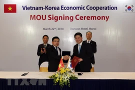 En esta ocasión, Tran Dai Quang y Moon Jae-in atestiguaron lafirma de los memorandos de entendimiento sobre el programa de acción en cooperación comercial para elperíodo 2018-2020, la colaboración en industria auxiliar,infraestructura y transporte, construcción y desarrollo urbano, la respuesta a los impactos de la cuarta revolución industria, entre otros acuerdos.