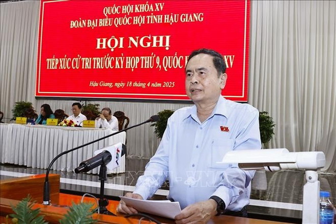 Hau Giang, Vietnam (VNA) - El presidente de la Asamblea Nacional (AN, Parlamento) de Vietnam, Tran Thanh Man, se reunió hoy con los votantes en la ciudad de Vi Thanh, de la provincia sureña de Hau Giang, en vísperas del próximo noveno período de sesiones de la AN de la XV legislatura.