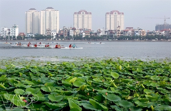 Imágenes de loto pintan de verde el moderno Hanoi (Fuente: VNA)