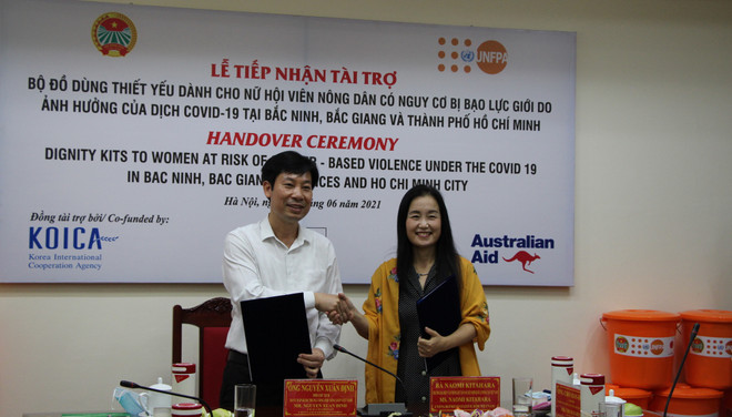 Nguyen Xuan Dinh, vicepresidente de la Asociación de Agricultores de Vietnam, y Naomi Kitahara, representante en jefa de UNFPA en Vietnam (Fuente:VNA) Por su parte, el vicepresidente de la Asociación vietnamita, Nguyen Xuan Dinh,apreció la asistencia y la coordinación del UNFPA en Vietnam en las esferas dela atención de salud reproductiva, la igualdad de género y la prevención y luchacontra la violencia a las féminas y niñas.
