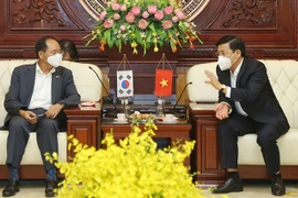 Durante la reunión entre el ministro de Industria y Comercio de Vietnam, Nguyen Hong Dien, y el embajador de Séul en Hanoi, Park Noh-wan (Fuente: VNA)